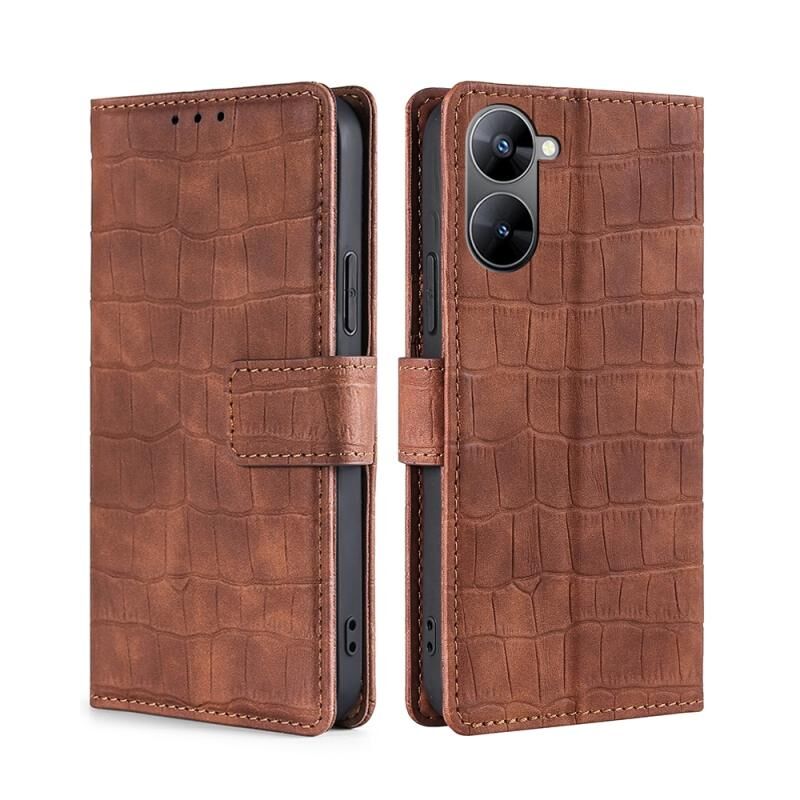 Θήκη τηλεφώνου από δέρμα με μαγνητικό κούμπωμα και υφή κροκόδειλου για Realme V30 5G / V30T (Μαύρο)