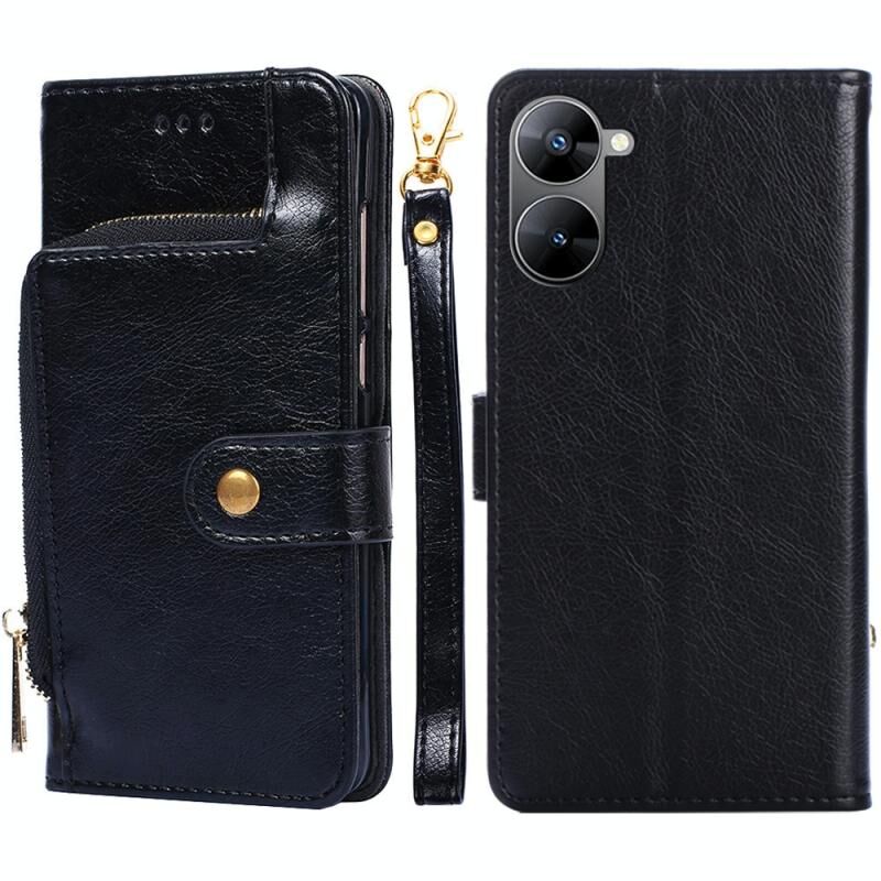 Για Realme V30 5G / V30T φερμουάρ τσάντα δερμάτινη θήκη τηλεφώνου (μαύρο)
