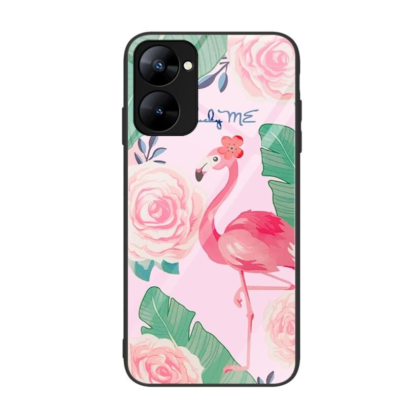 Θήκη τηλεφώνου Realme V30 με πολύχρωμο σχέδιο από ζωγραφιστό γυαλί (Φλαμίνγκο)