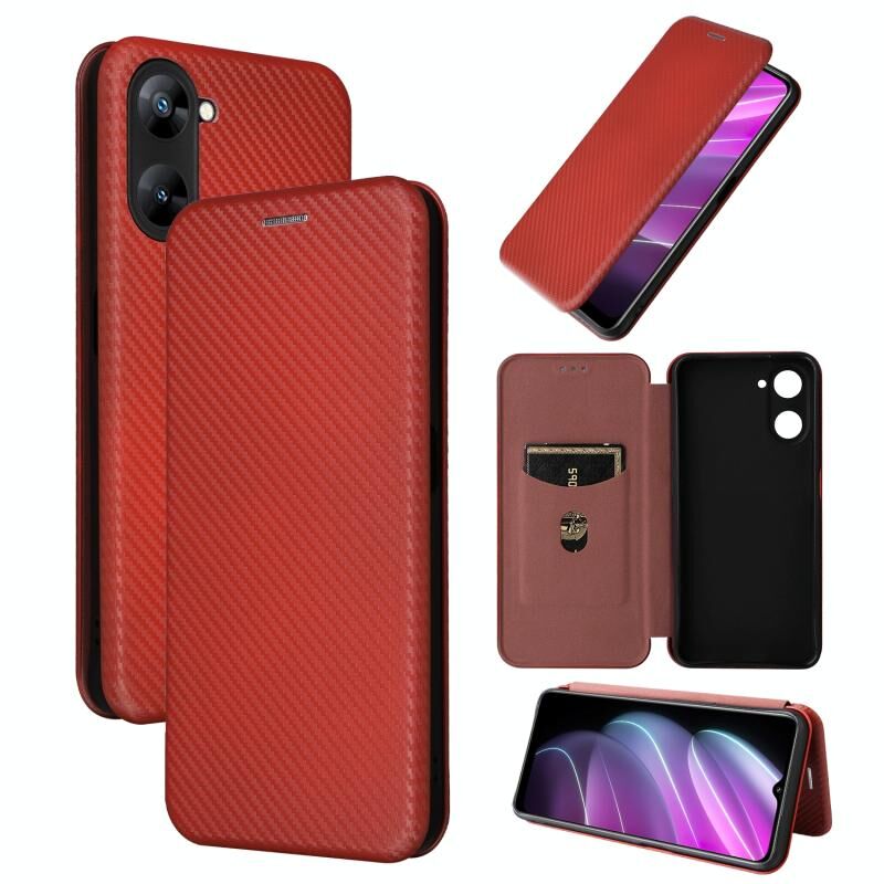 Θήκη τηλεφώνου από δέρμα με υφή ανθρακονήματος για Realme V30 / V30T (Πράσινο)