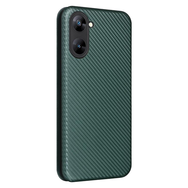 Θήκη τηλεφώνου από δέρμα με υφή ανθρακονήματος για Realme V30 / V30T (Πράσινο)