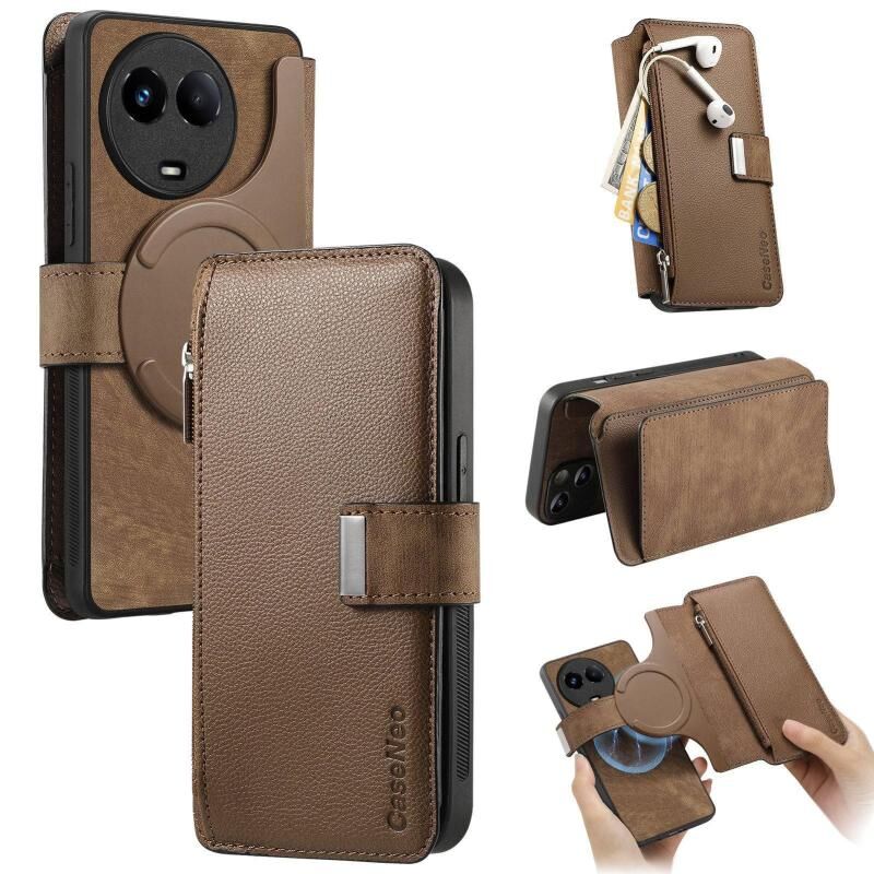 For Reamle 11 5G / 11X CaseNeo MagSafe RFID Anti-theft Zipper Wallet Retro Leather Phone Case(Brown) (CaseNeo)