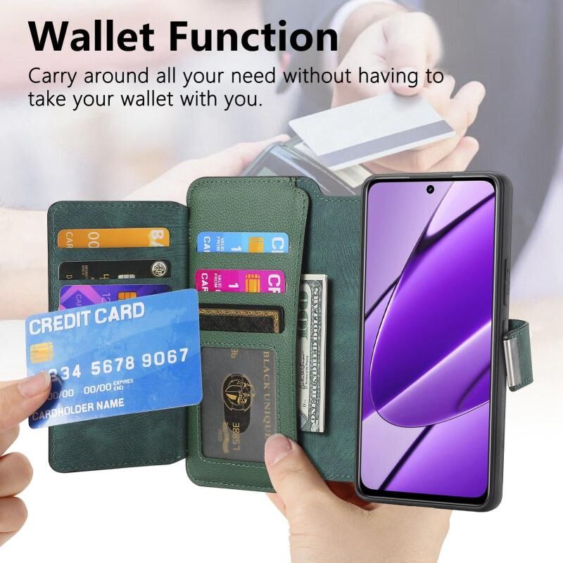 For Reamle 11 5G / 11X CaseNeo MagSafe RFID Anti-theft Zipper Wallet Retro Leather Phone Case(Green) (CaseNeo)
