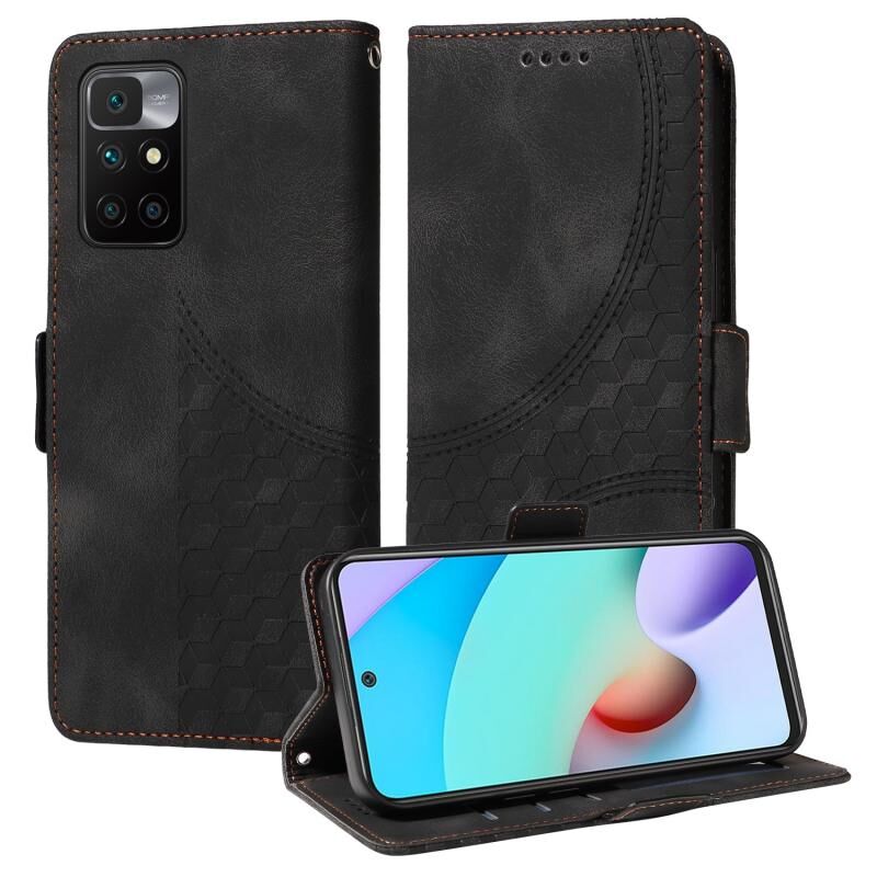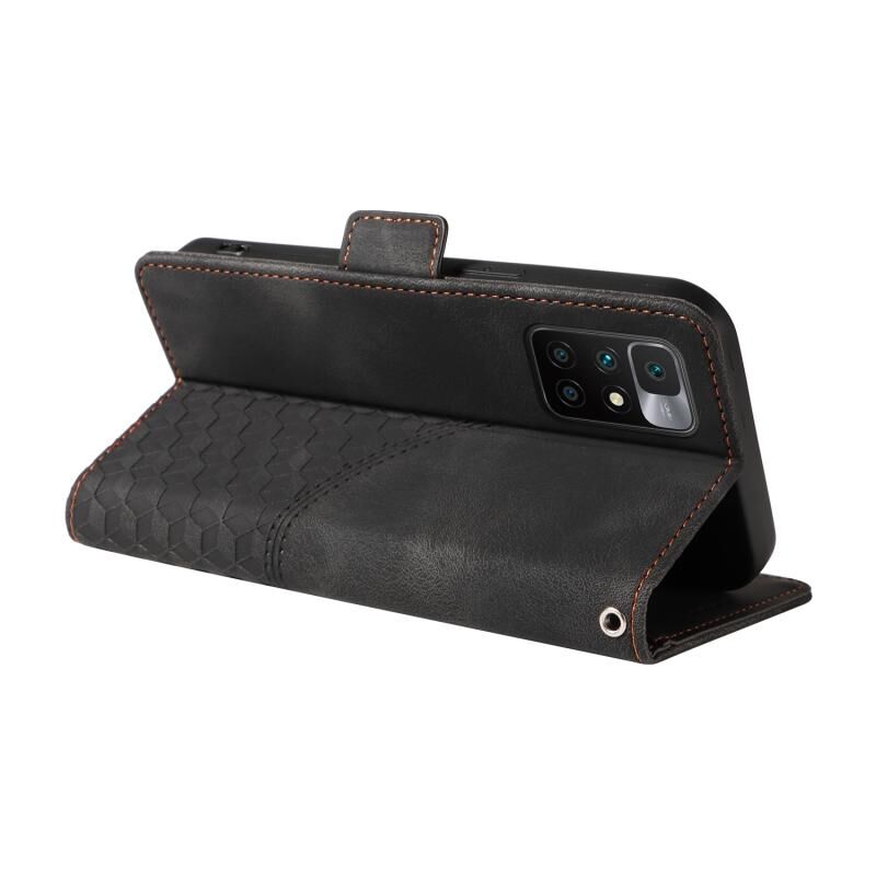 For Redmi 10 2022 Embossed Rhombus Starry Leather Phone Case(Black)