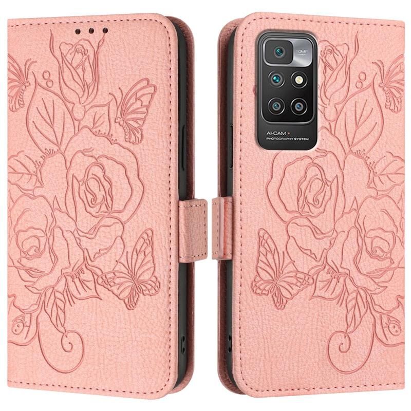 Για Redmi 10 4G 2021 / 2022 Παγκόσμια ανάγλυφο Rose RFID αντικλεπτική δερμάτινη θήκη τηλεφώνου (ροζ)