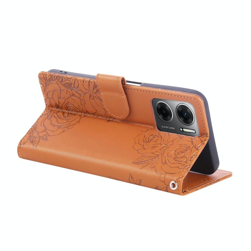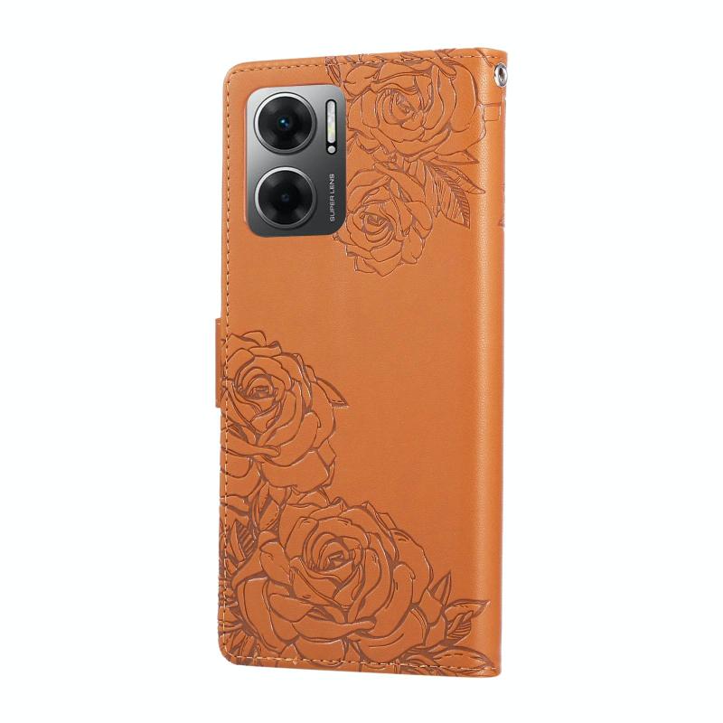 For Redmi 10 5G Rose Flower Embossed 3-Card Slots Leather Phone Case(Brown)