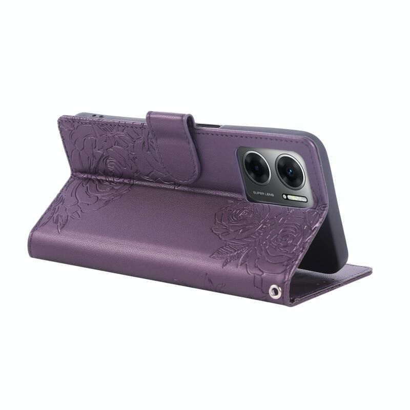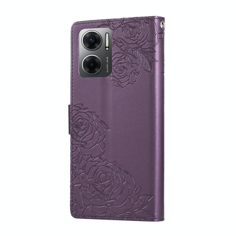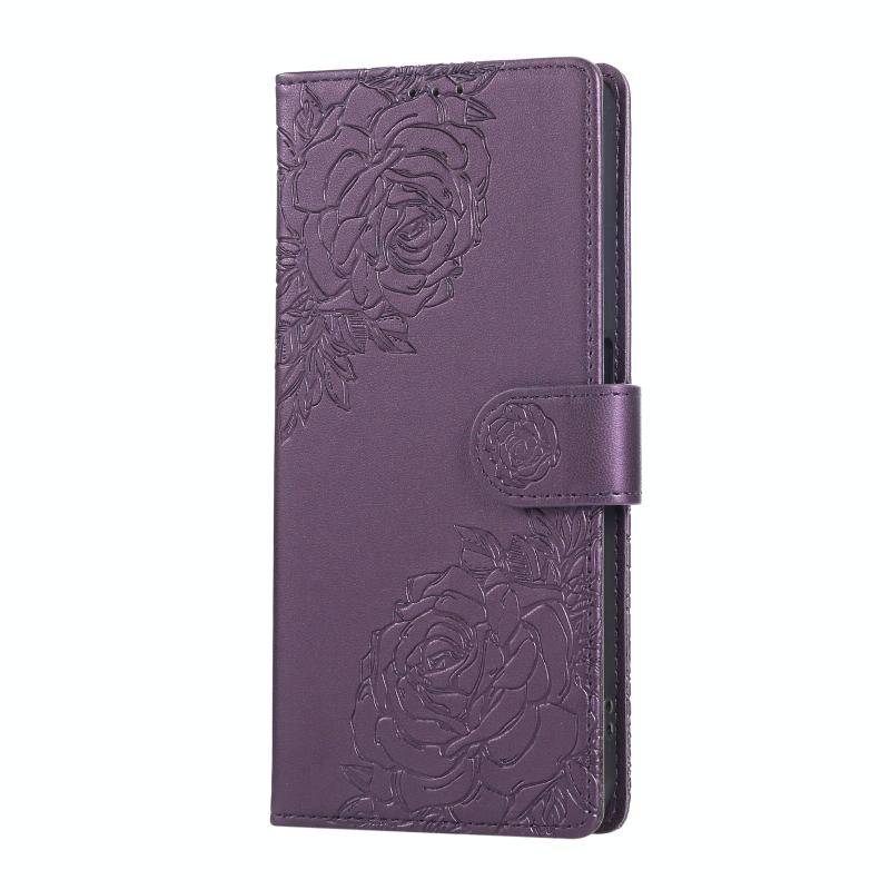 For Redmi 10 5G Rose Flower Embossed 3-Card Slots Leather Phone Case(Deep Purple)