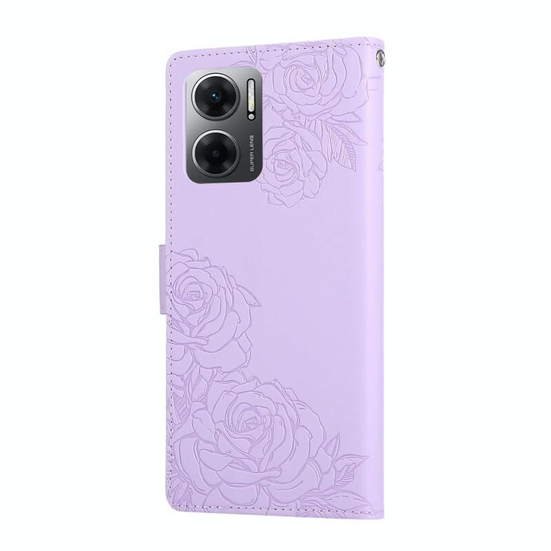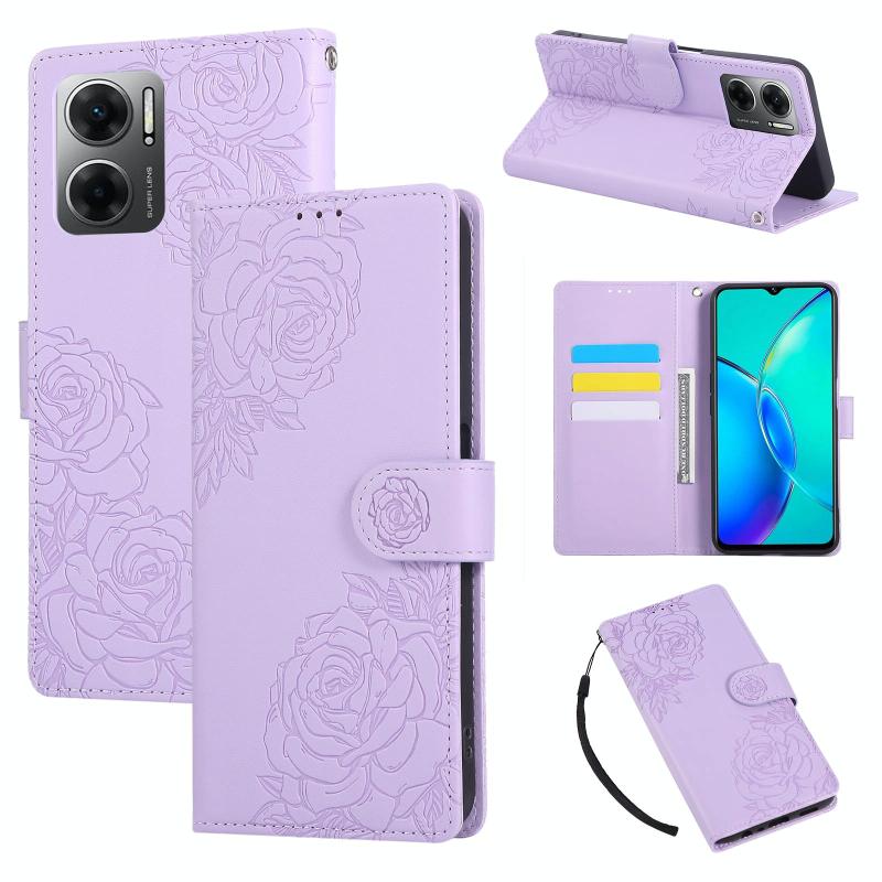For Redmi 10 5G Rose Flower Embossed 3-Card Slots Leather Phone Case(Purple)