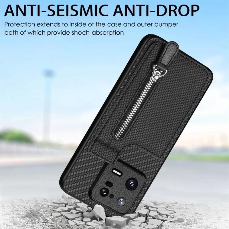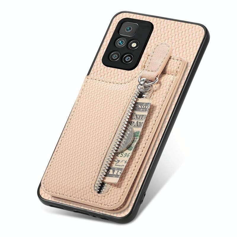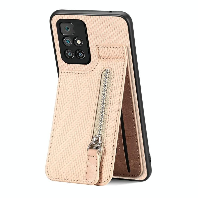 Για Redmi 10 Carbon Fiber Κάθετη Flip φερμουάρ τηλέφωνο υπόθεση (χακί)
