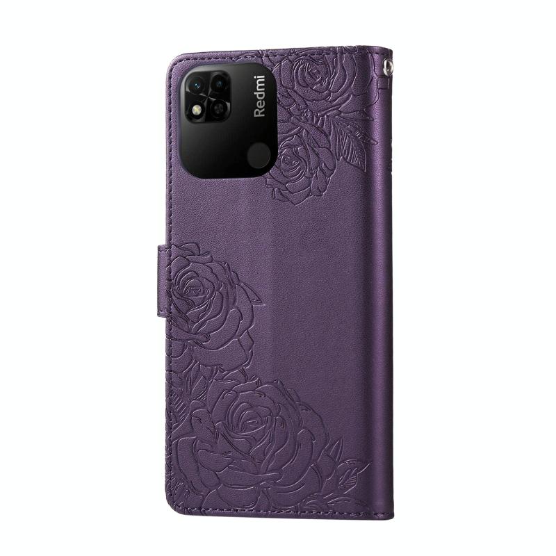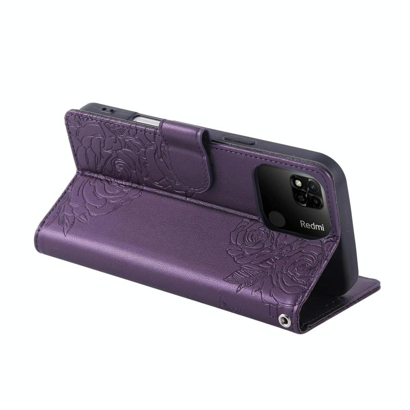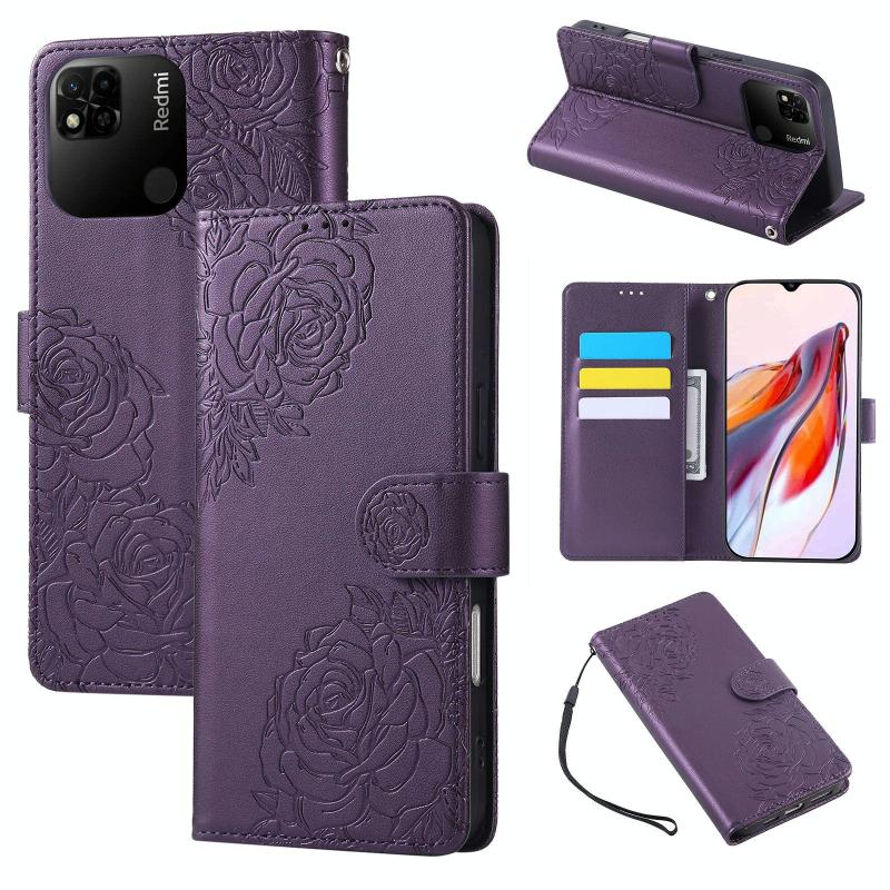 For Redmi 10A 4G Rose Flower Embossed 3-Card Slots Leather Phone Case(Deep Purple)