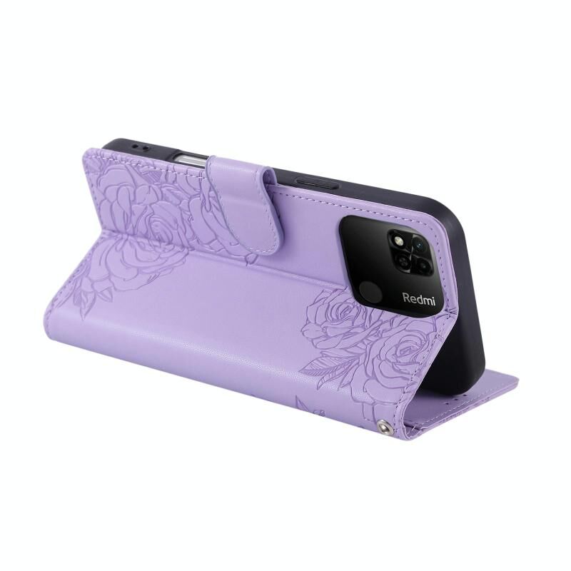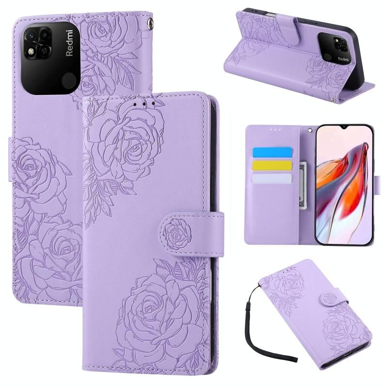 For Redmi 10A 4G Rose Flower Embossed 3-Card Slots Leather Phone Case(Purple)