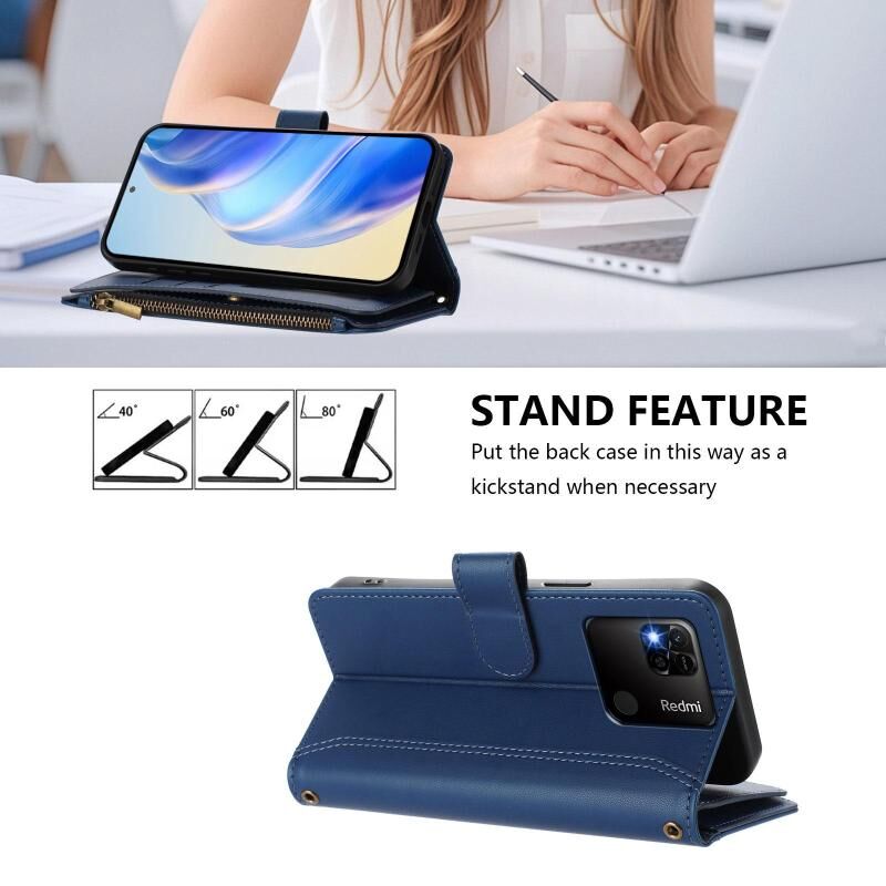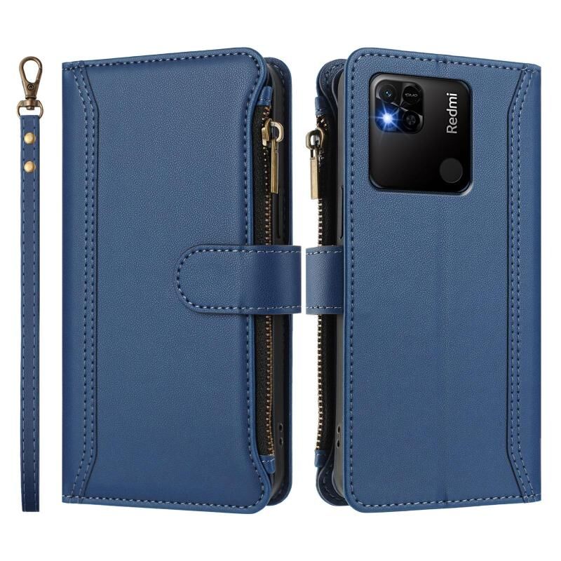 Για Redmi 10A / 9C Μαγνητικό Κλείσιμο 9 Θήκες Κάρτας Δερμάτινη Θήκη με Φερμουάρ και Λουρί Χεριού (Σκούρο μπλε)