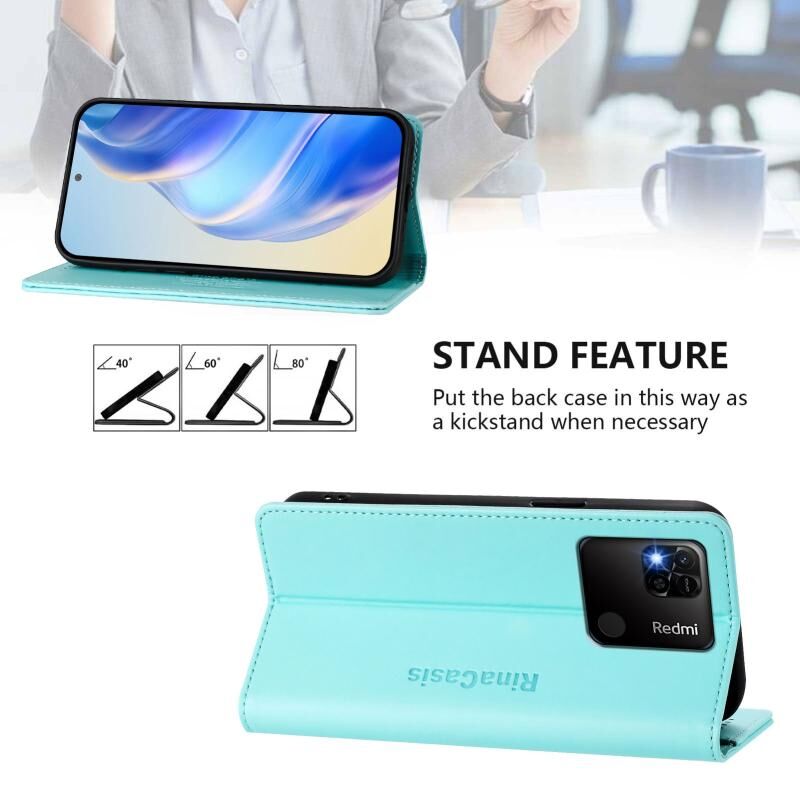 Θήκη τηλεφώνου από δέρμα με μαγνητική απορρόφηση και διπλή πτύχωση για Redmi 10A / 9C RC01 (Μέντα Πράσινο)