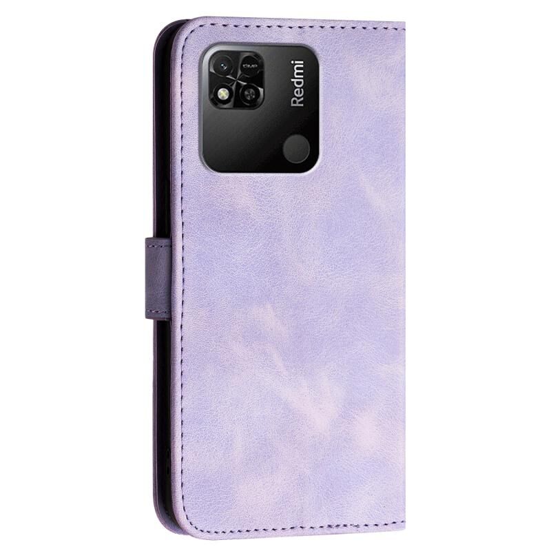 Θήκη τηλεφώνου δερμάτινη με ανάγλυφο σχέδιο πλέγματος και πεταλούδας για Redmi 10A YX0080 με κορδόνι (ανοιχτό μωβ)