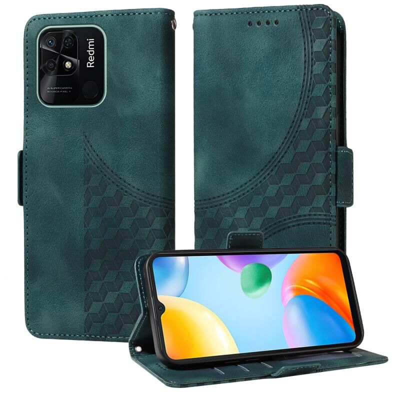 Θήκη τηλεφώνου από δέρμα με ανάγλυφο ρόμβο και αστρικό σχέδιο για Redmi 10C / 10 India (Πράσινο)