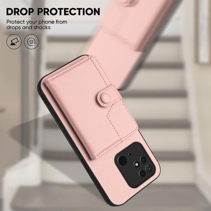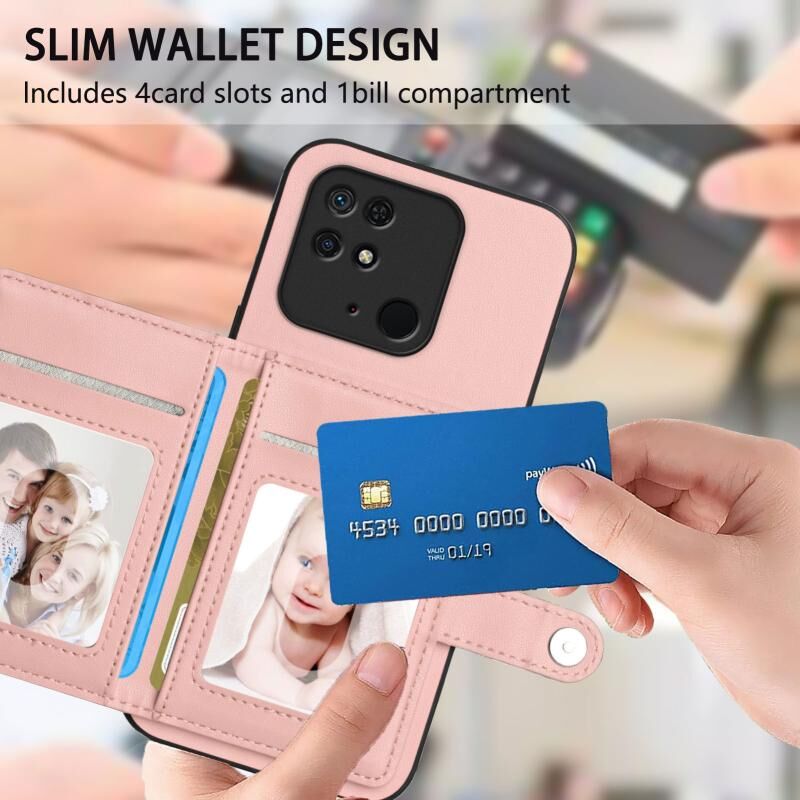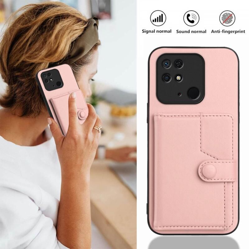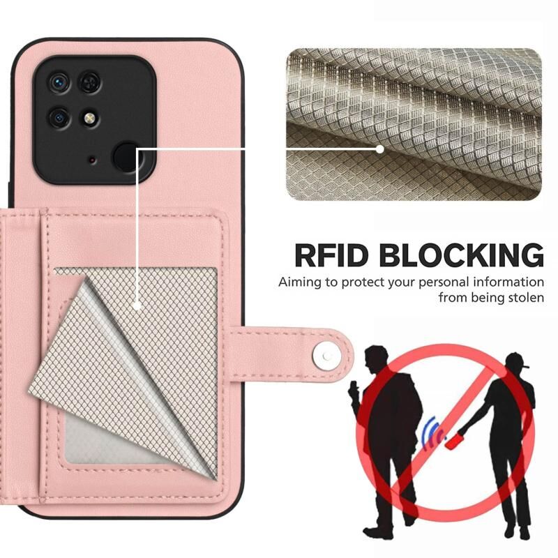 Για Redmi 10C Button Card Bag RFID Anti-theft τηλέφωνο υπόθεση (ροζ)