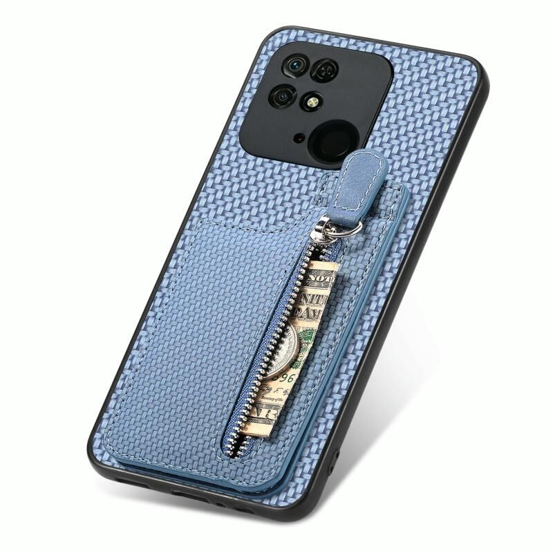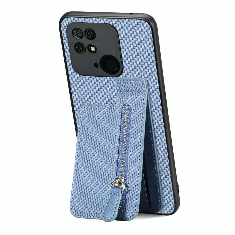 Για Redmi 10C Carbon Fiber Κάθετη Flip φερμουάρ τηλέφωνο υπόθεση (μπλε)