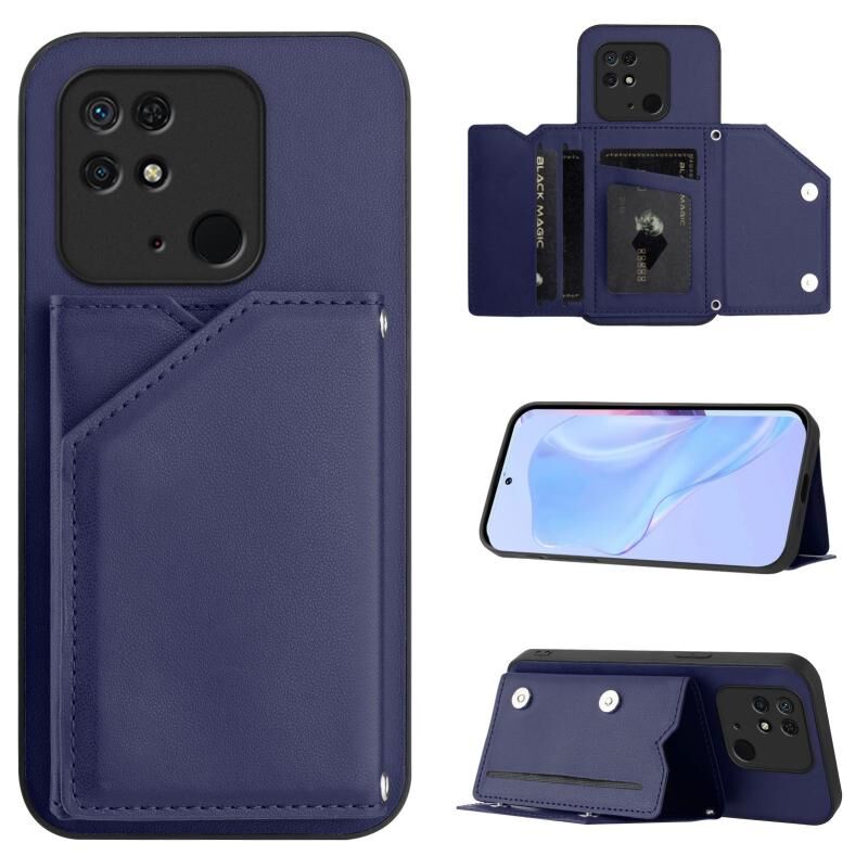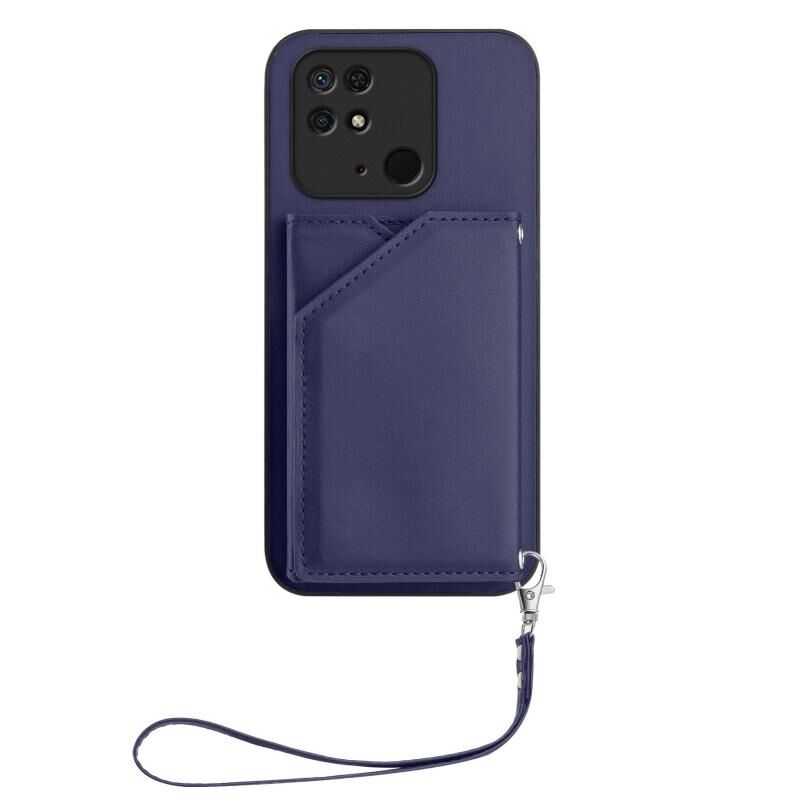 Για Redmi 10C Skin Feel Τέσσερις υποδοχές καρτών υπόθεση τηλεφώνου με λουράκι καρπού (μπλε)