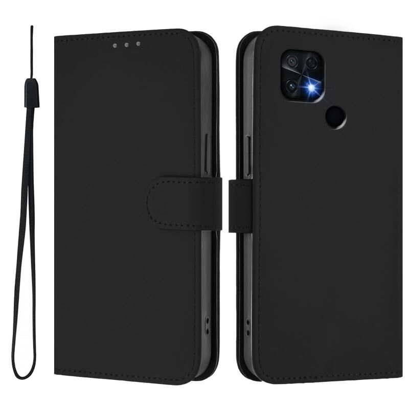 Για Redmi 10C δέρμα αισθάνονται στερεό χρώμα δερμάτινη θήκη τηλεφώνου με κορδόνι (Μαύρο)