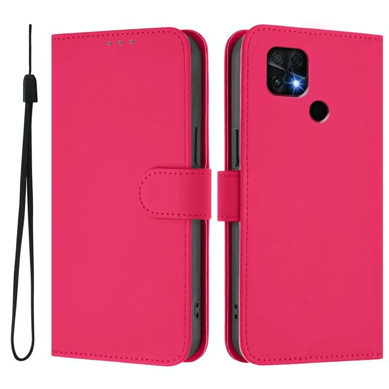 Για Redmi 10C δέρμα αισθάνονται στερεό χρώμα δερμάτινη θήκη τηλεφώνου με κορδόνι (Rose Red)