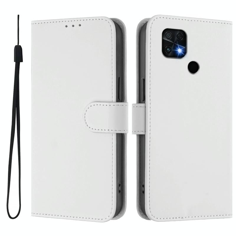 Για Redmi 10C δέρμα αισθάνονται στερεό χρώμα δερμάτινη θήκη τηλεφώνου με κορδόνι (Λευκό)