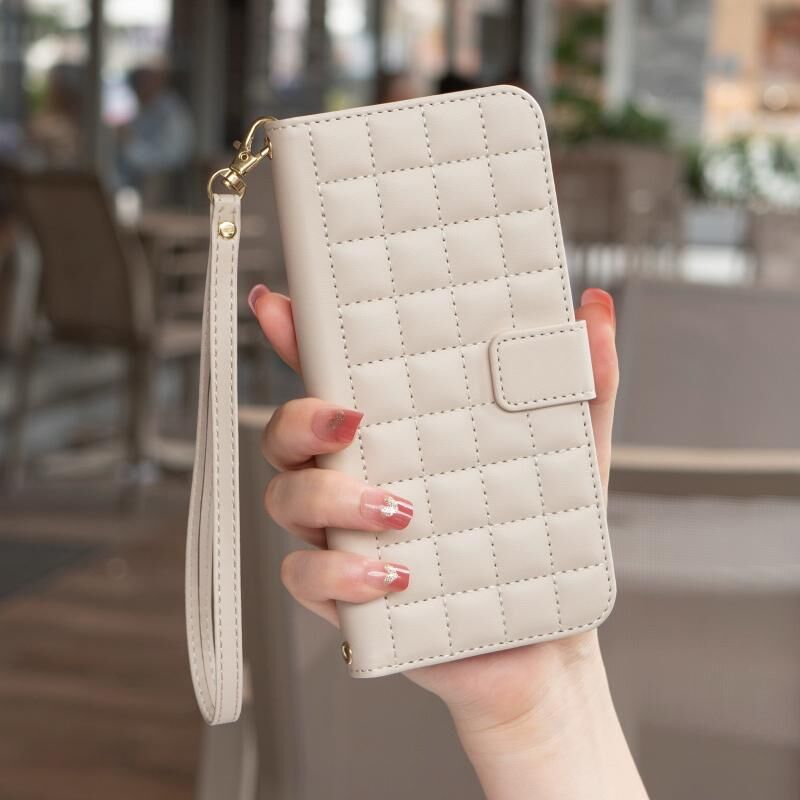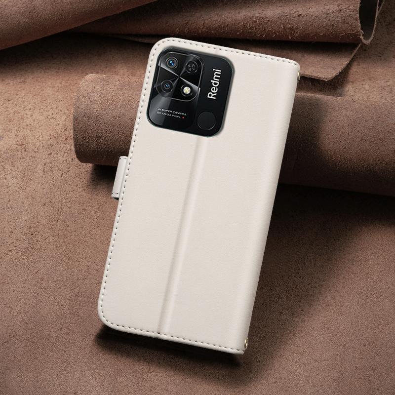 Θήκη Δερμάτινη με Τετράγωνο Μοτίβο για Redmi 10C (Μπεζ)