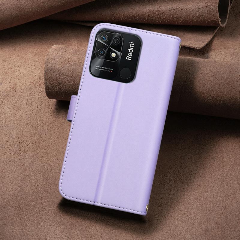 Θήκη Δερμάτινη με Τετράγωνο Μοτίβο για Redmi 10C (Μωβ)