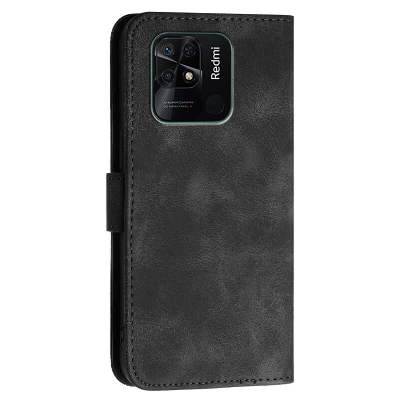 Θήκη τηλεφώνου δερμάτινη με ανάγλυφο σχέδιο πλέγματος και πεταλούδας για Redmi 10C YX0080 με κορδόνι (Σκούρο Μπλε)