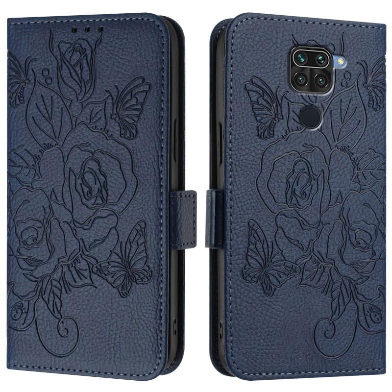 Για Redmi 10X 4G / Σημείωση 9 4G Παγκόσμια ανάγλυφο Rose RFID Anti-theft Δερμάτινη θήκη τηλεφώνου (σκούρο μπλε)