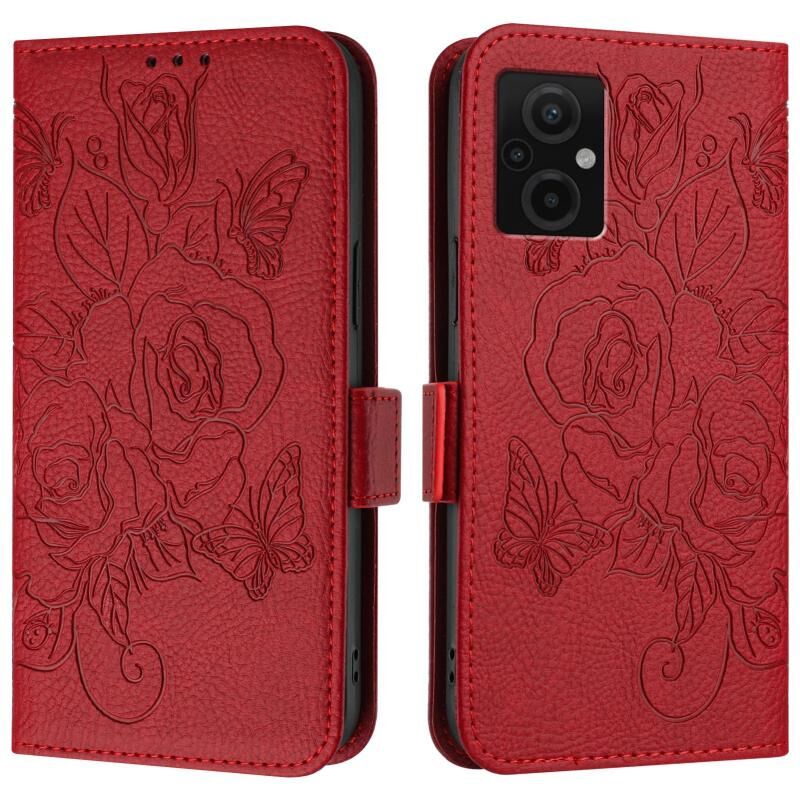 Για Redmi 11 Prime 5G / Σημείωση 11R ανάγλυφο Rose RFID αντικλεπτική δερμάτινη θήκη τηλεφώνου (κόκκινο)