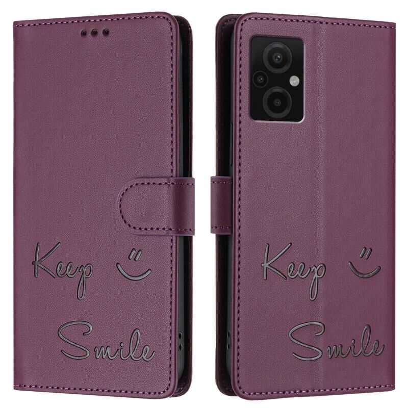 Για Redmi 11 Prime 5G / Redmi 10 5G Χαμόγελο ανάγλυφο RFID δερμάτινη θήκη τηλεφώνου (Violet)