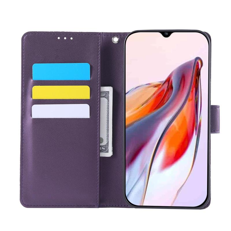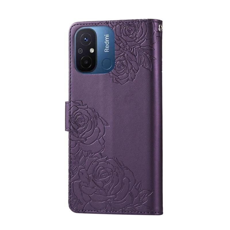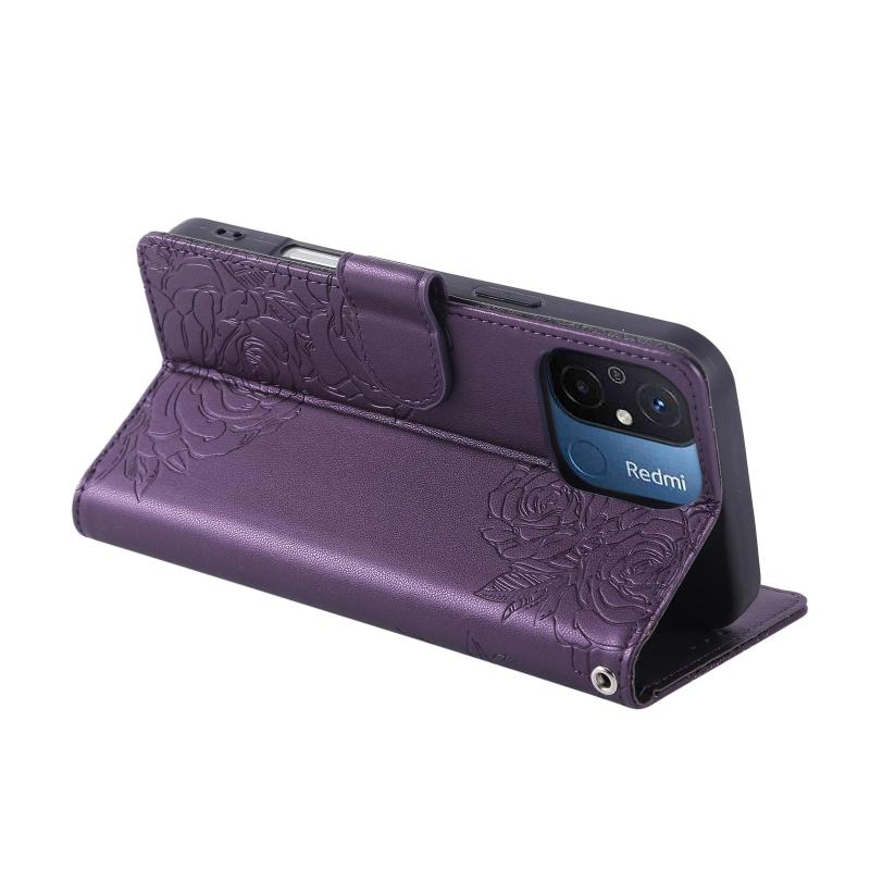 For Redmi 11A 4G Global Rose Flower Embossed 3-Card Slots Leather Phone Case(Deep Purple)