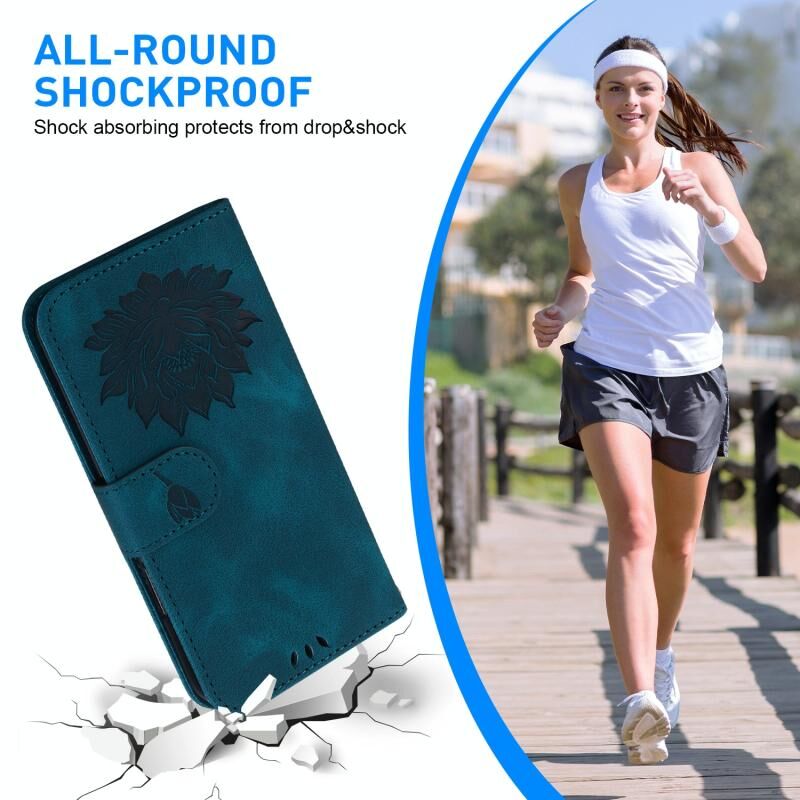 Θήκη τηλεφώνου από δέρμα με ανάγλυφο λωτού για Redmi 12 4G / 12 5G / Note 12R 5G (Σκούρο μπλε)