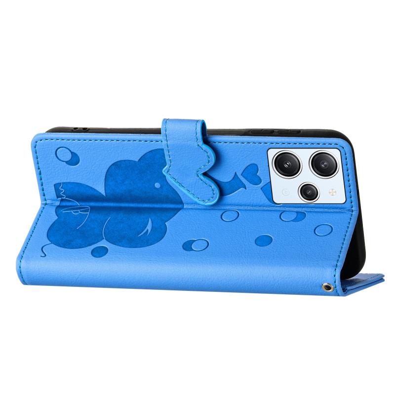 For Redmi 12 4G / 5G Cartoon Elephant Embossed Leather Phone Case(Blue)