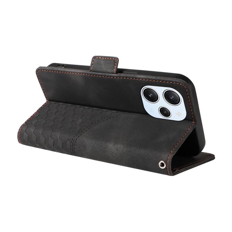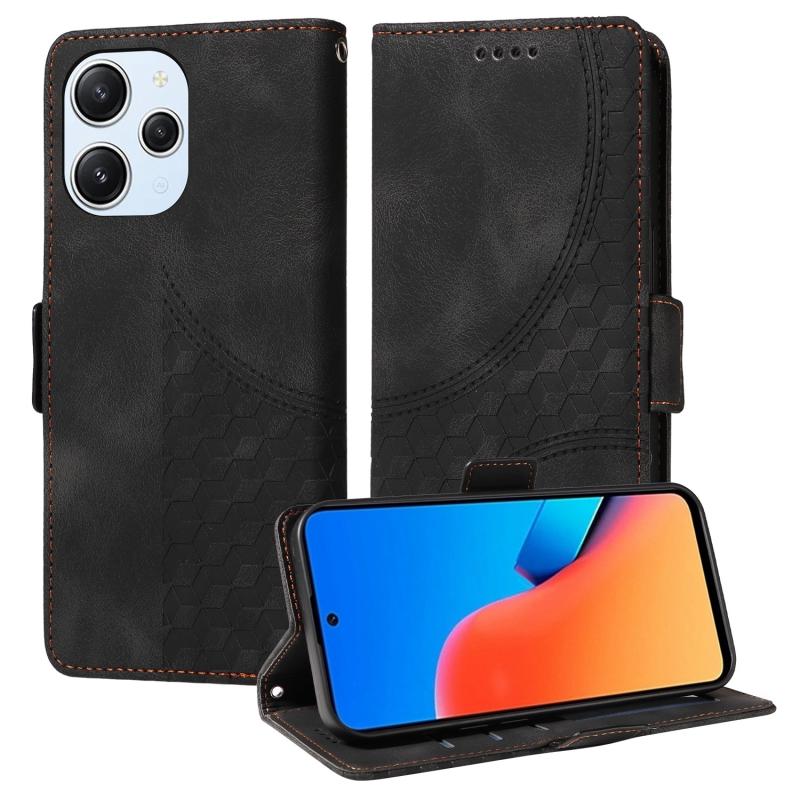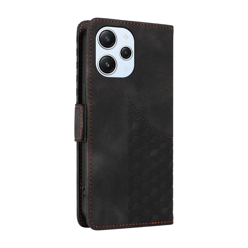 For Redmi 12 4G / 5G / Note 12R Embossed Rhombus Starry Leather Phone Case(Black)