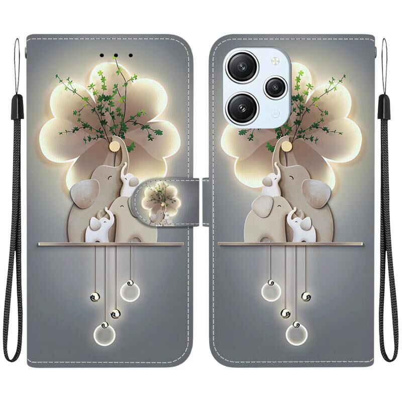 Θήκη τηλεφώνου από δέρμα με κρυσταλλική υφή και πολύχρωμο σχέδιο για Redmi 12 4G / 5G / Poco M6 Pro (Ελέφαντες)