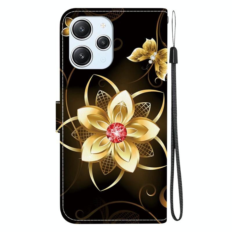 Θήκη τηλεφώνου από δέρμα με πολύχρωμο σχέδιο κρυστάλλινης υφής για Redmi 12 4G / 5G / Poco M6 Pro (Χρυσά φτερά πεταλούδας)