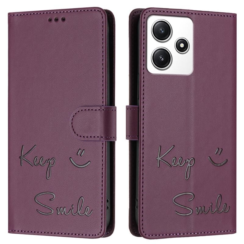Για Redmi 12 4G Global / Ινδία Χαμόγελο ανάγλυφο RFID δερμάτινη θήκη τηλεφώνου (Κόκκινο)