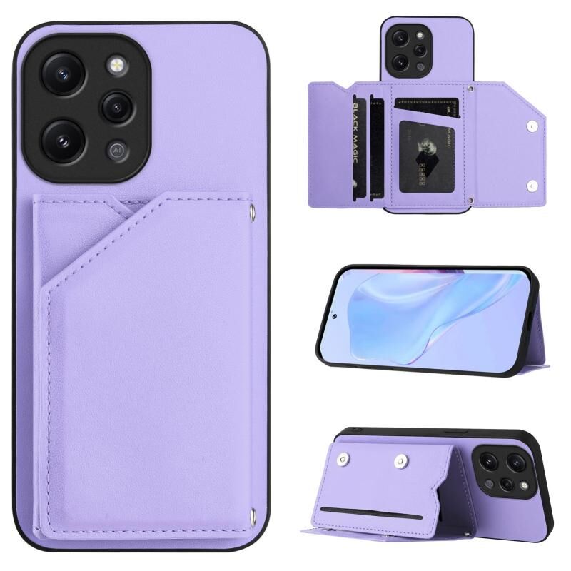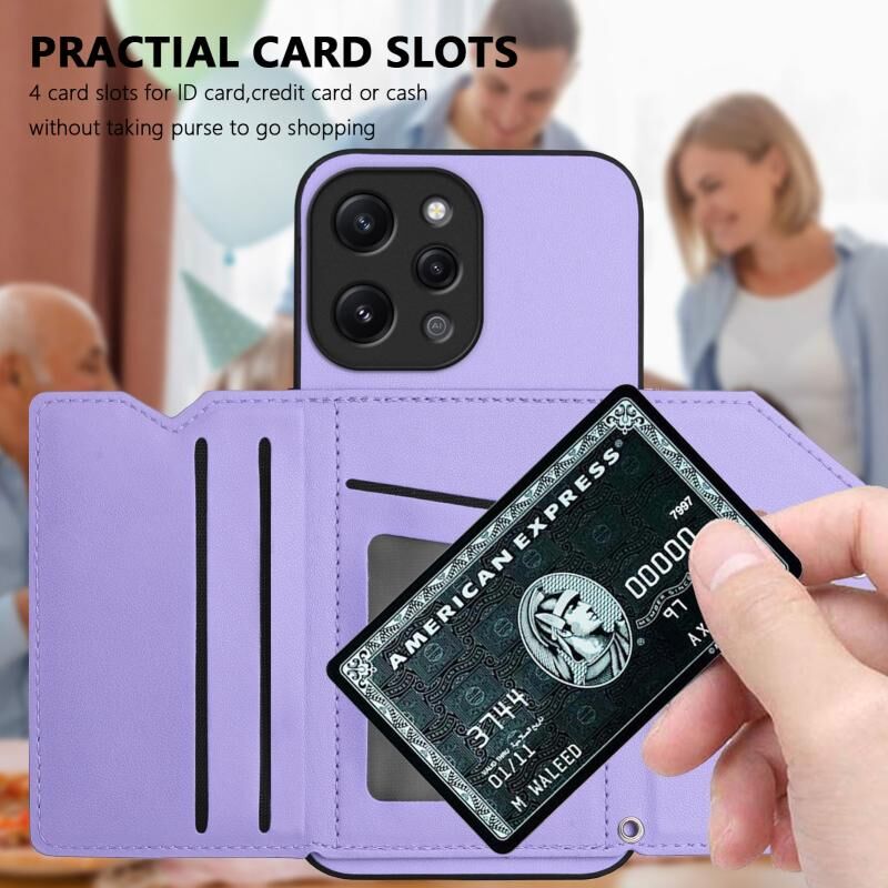 Για Redmi 12 4G Global Skin Feel Τέσσερις υποδοχές καρτών υπόθεση τηλεφώνου με λουράκι καρπού (μωβ)