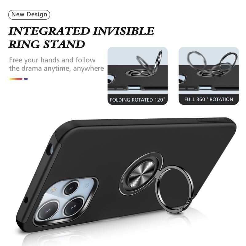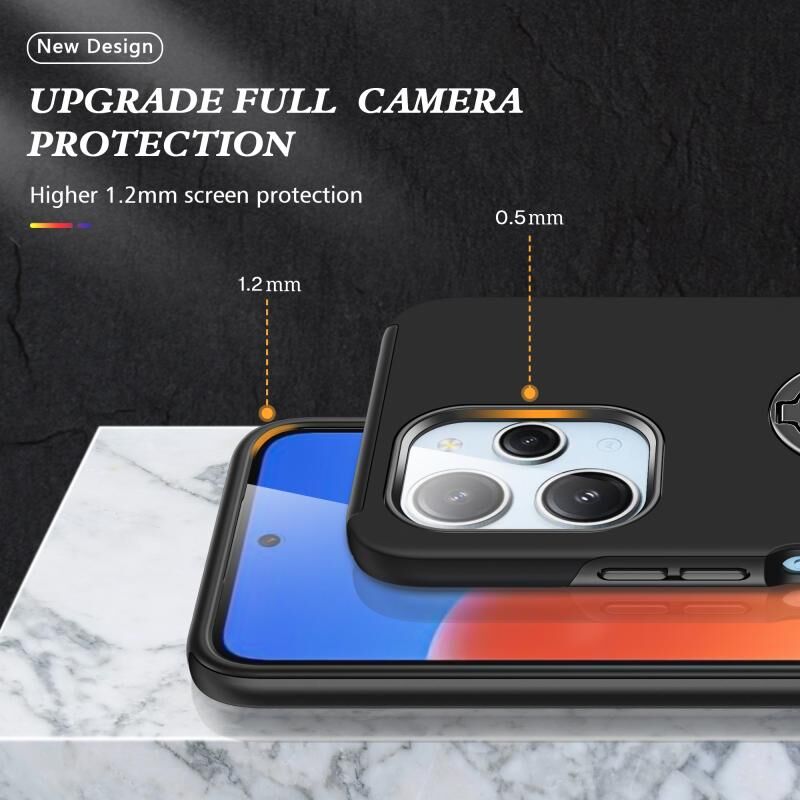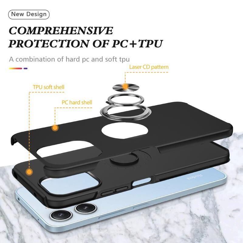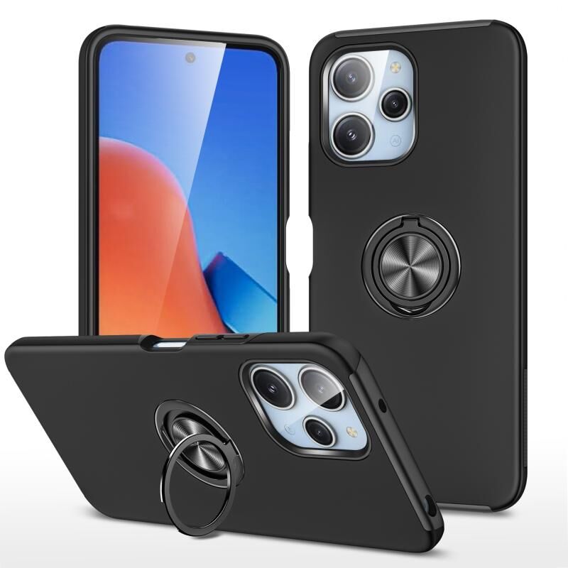 Για Redmi 12 4G PC Hybrid TPU Μαγνητικό δαχτυλίδι κάτοχος τηλέφωνο υπόθεση (Μαύρο)