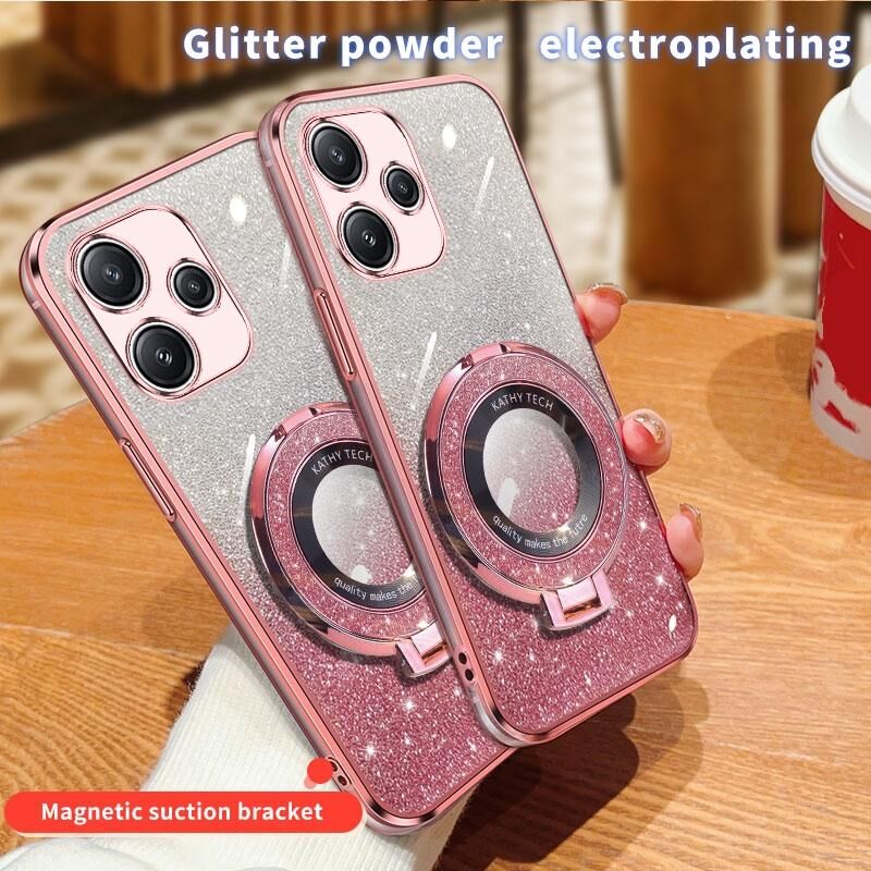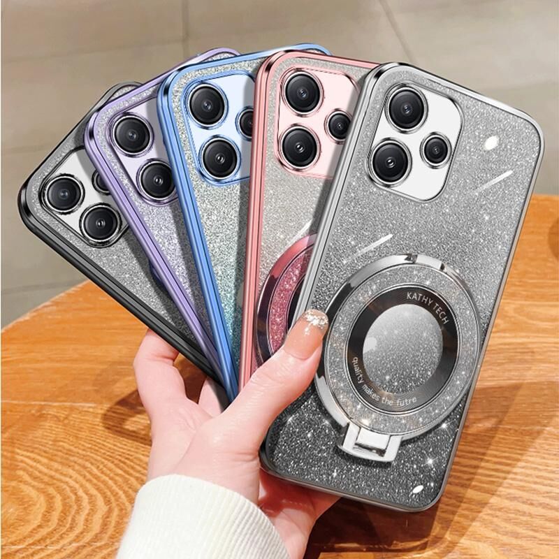 Για Redmi 12 5G επιμεταλλωμένο βαθμιδωτή Glitter στρογγυλή θήκη TPU τηλέφωνο κάτοχος (Μωβ)