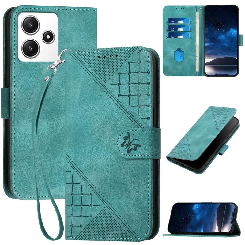 Θήκη τηλεφώνου από δέρμα με ανάγλυφο σχέδιο πλέγματος και πεταλούδας για Light Bluemi 12 5G YX0080 με κορδόνι (Ανοιχτό μπλε)
