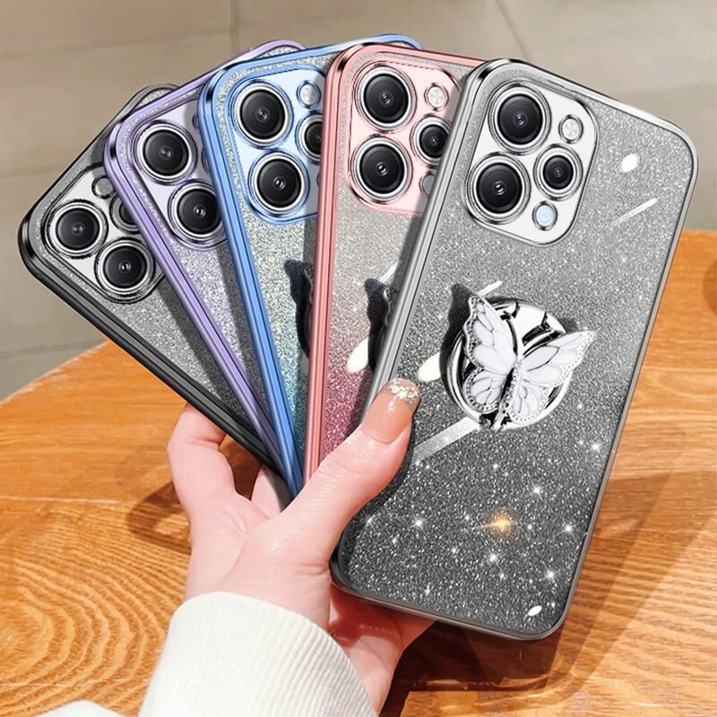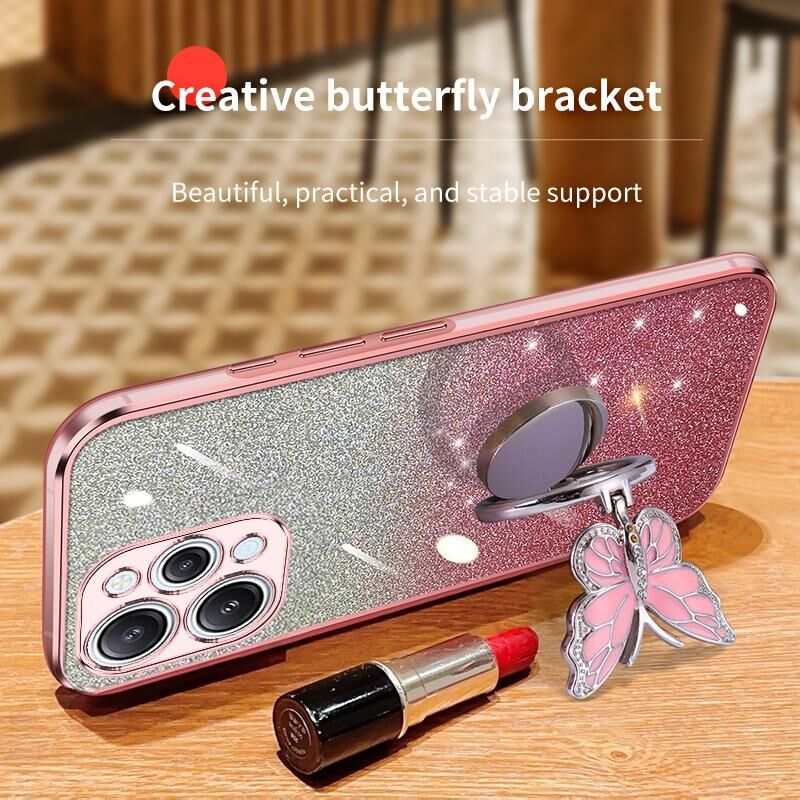 Για Redmi 12 επιμεταλλωμένο διαβάθμιση Glitter πεταλούδα κάτοχος TPU τηλέφωνο υπόθεση (ασημί)