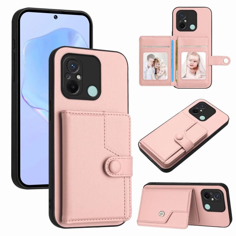 Για Redmi 12C / 11A Button Card Bag RFID Anti-theft τηλέφωνο υπόθεση (ροζ)