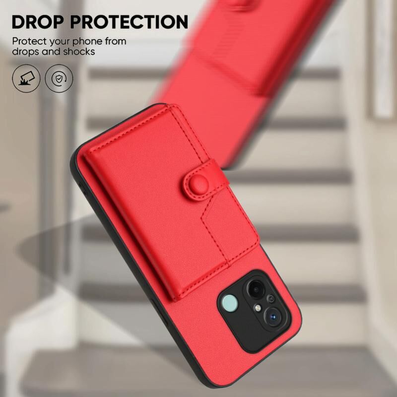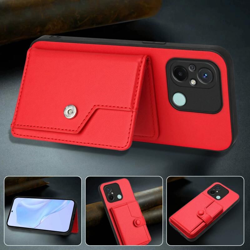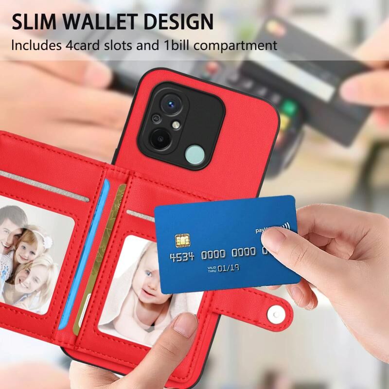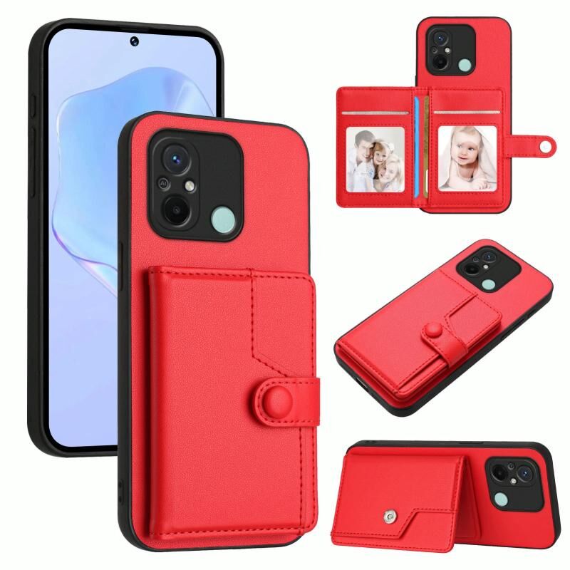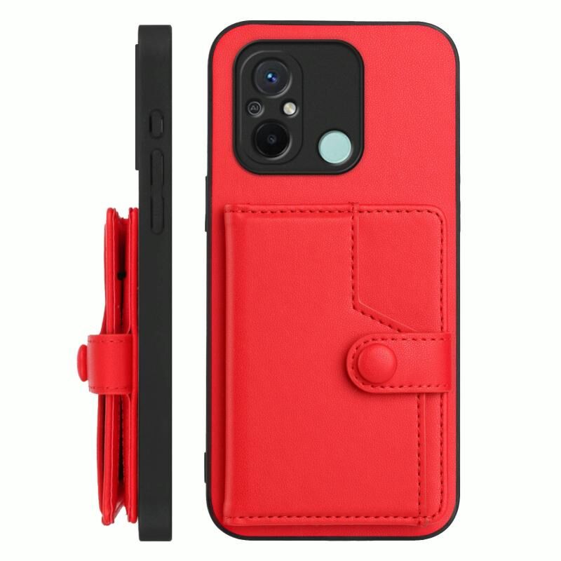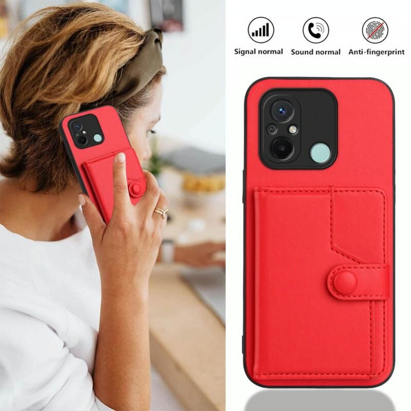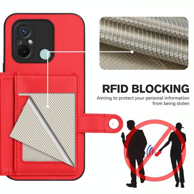 Για Redmi 12C / 11A Button Card Bag RFID Anti-theft τηλέφωνο υπόθεση (κόκκινο)