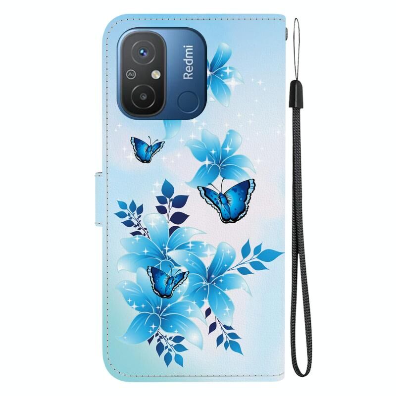 Θήκη τηλεφώνου από δέρμα με κρυσταλλική υφή και έγχρωμη σχεδίαση για Redmi 12C / 11A (Χρυσά Φτερά Πεταλούδας)