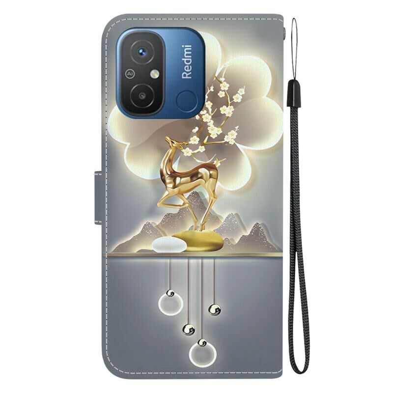 Θήκη τηλεφώνου από δέρμα με σχέδιο κρυστάλλινης υφής και πολύχρωμη ζωγραφική για Redmi 12C / 11A (Ελάφι Σίκα)