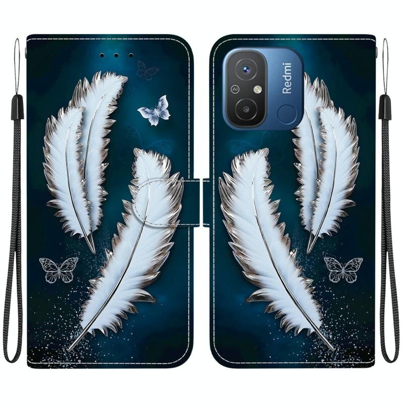 Θήκη τηλεφώνου από δέρμα με κρυσταλλική υφή και έγχρωμη σχεδίαση για Redmi 12C / 11A (Χρυσά Φτερά Πεταλούδας)