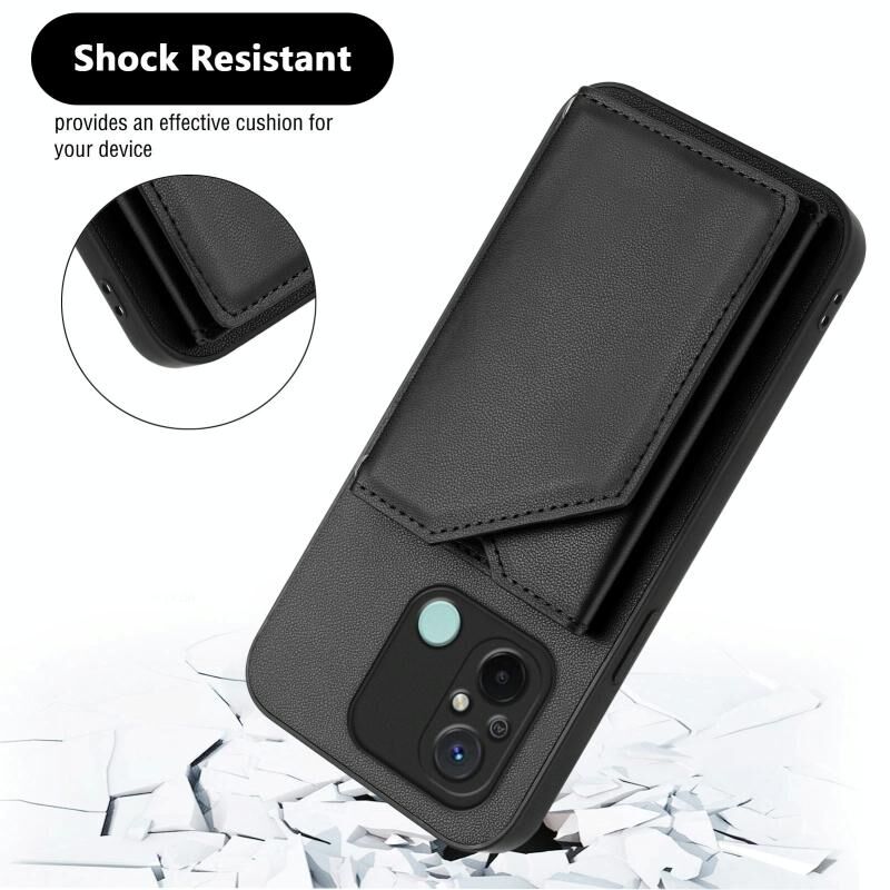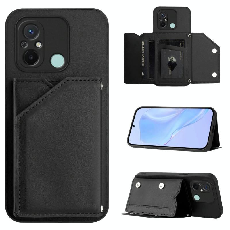 Για Redmi 12C / 11A Skin Feel Τέσσερις υποδοχές καρτών υπόθεση τηλεφώνου με λουράκι καρπού (Μαύρο)
