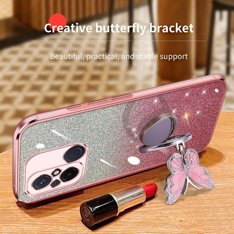 Για Redmi 12C επιμεταλλωμένο διαβάθμιση Glitter πεταλούδα κάτοχος TPU τηλέφωνο υπόθεση (μωβ)